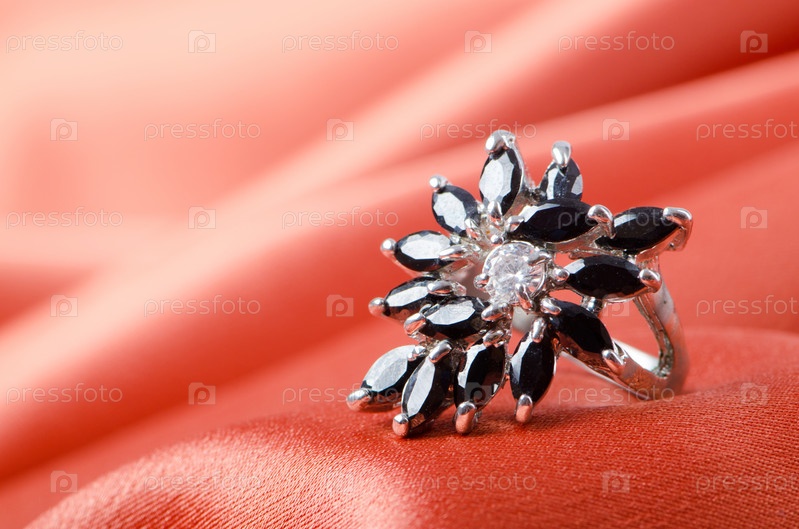 Кольцо крупным планом на красном фоне