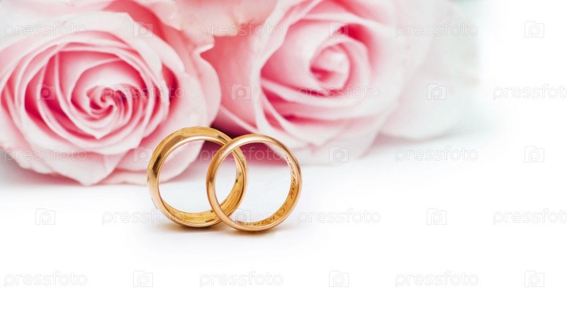 Обручальные кольца на фоне роз