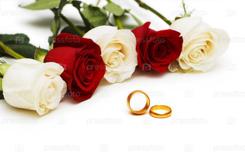 Обручальные кольца и розы