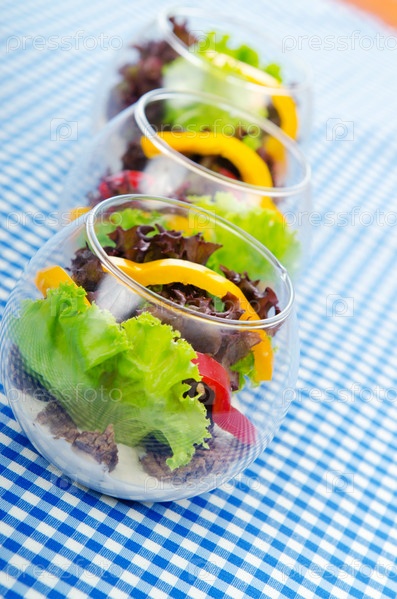 Три чашки с салатом крупным планом