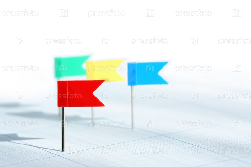 Цветные пластиковые флажки на миллиметровой бумаге со свободным пространством для текста