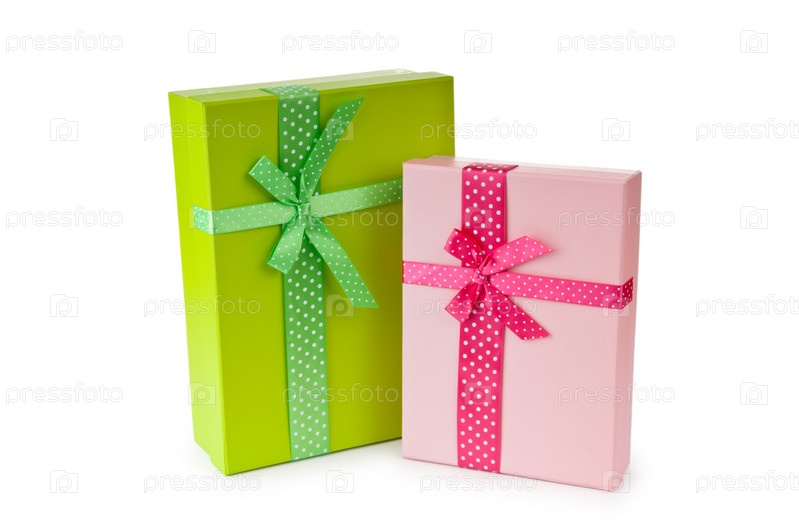 Подарочные коробки на белом фоне