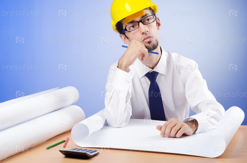 Молодой мужчина-инженер думает над чертежом