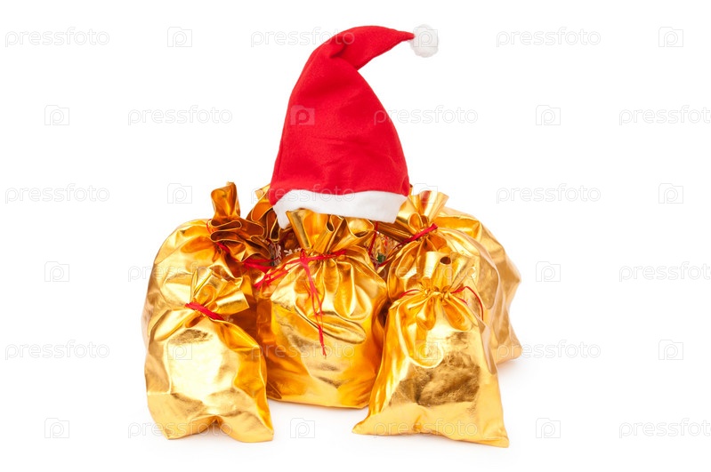 Золотые мешки и шапка Санты
