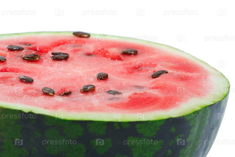Разрезанный арбуз крупным планом на белом изолированном фоне