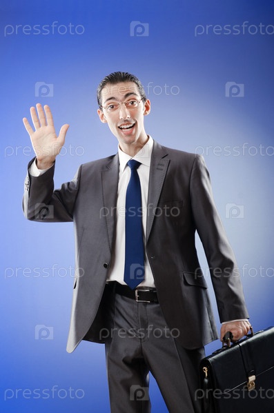 Молодой бизнесмен с приветственным жестом