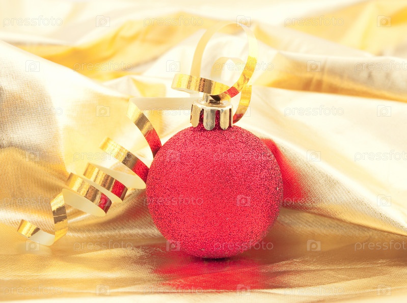 Яркий рождественский мяч на золотом фоне
