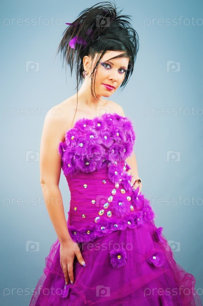 Молодая невеста в ярком платье, студийный портрет