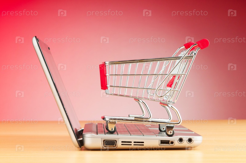 Концепция интернет-магазина: ноутбук и тележка для продуктов