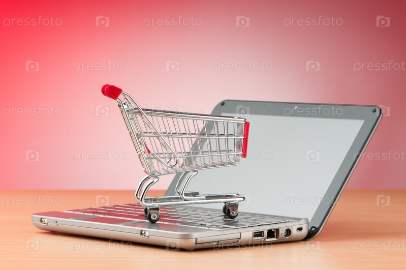 Концепция интернет-магазина: ноутбук и тележка для продуктов