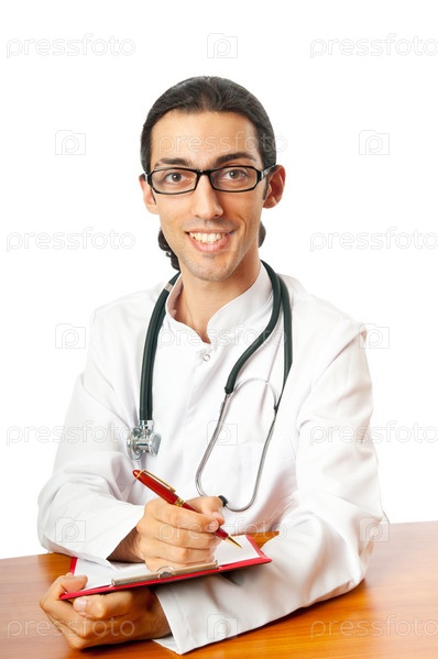 Молодой врач сидит за столом
