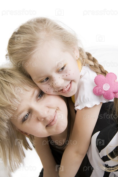 Ласковая дочка обнимает маму