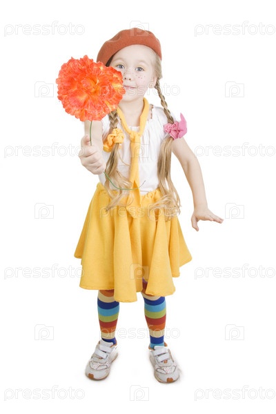 Смешная девочка с цветком