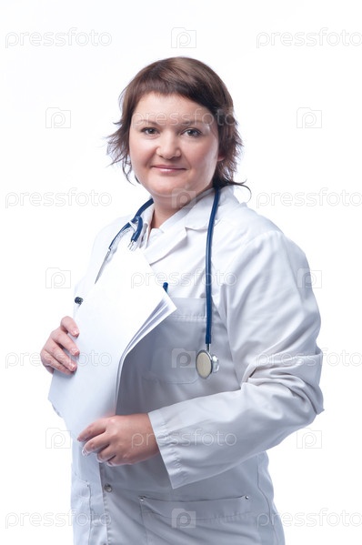 Портрет женщины-врача на белом фоне