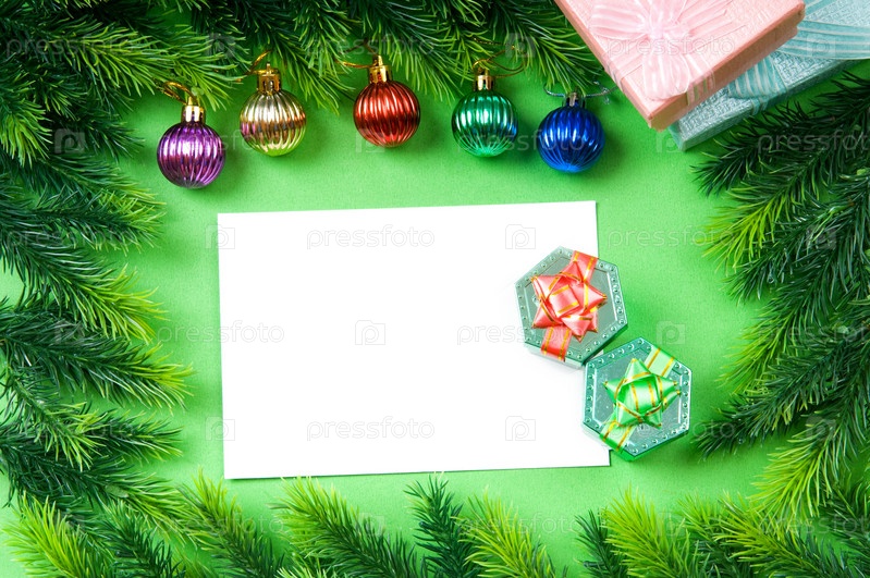 Новогодняя рамка из елочных веток и украшений