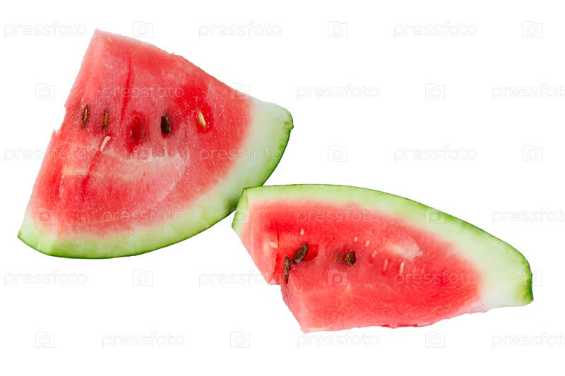 Ломтики сочного спелого арбуза на белом фоне