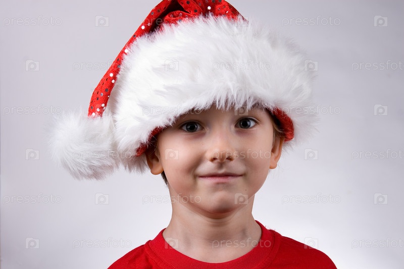 Ребенок в колпаке Санта Клауса на светлом фоне