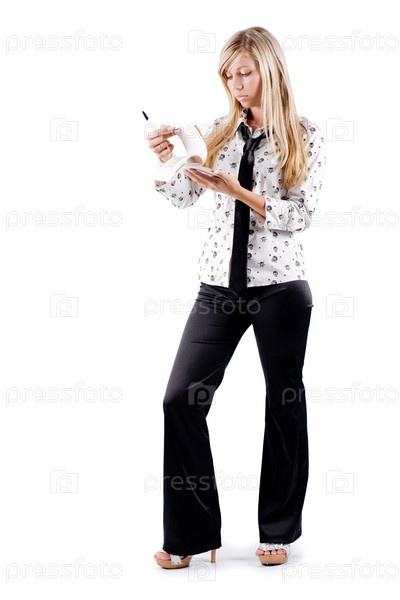 Девушка с блокнотом и авторучкой в руках