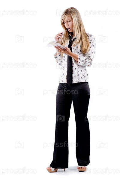 Девушка с блокнотом и авторучкой в руках