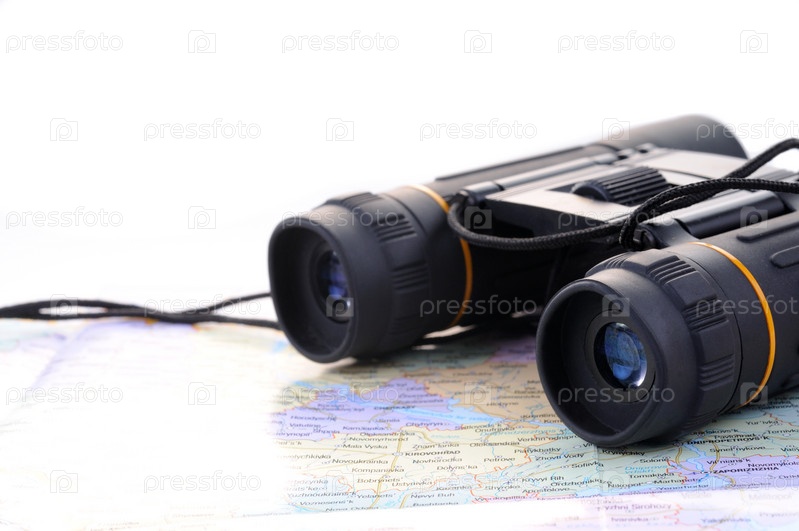 Черный бинокль на карте
