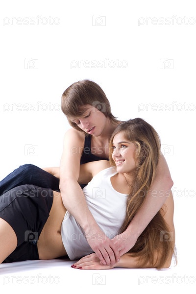 Влюбленная пара на белом фоне