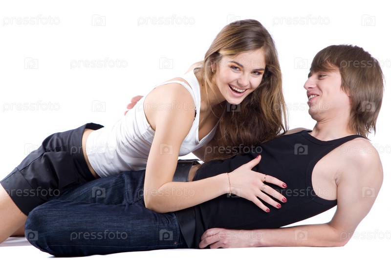 Влюбленная пара на белом фоне