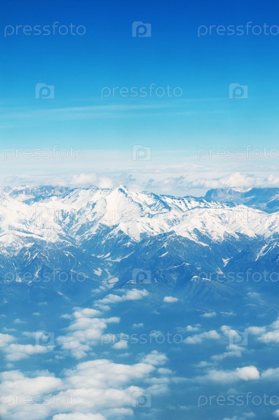 Снежные вершины гор над облаками