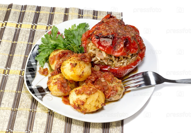Сладкий болгарский перец, фаршированный овощами и картофель (Греческая кухня)