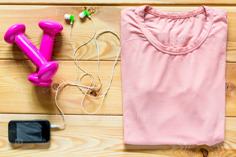 Одежда и гантели для спорта для девушки