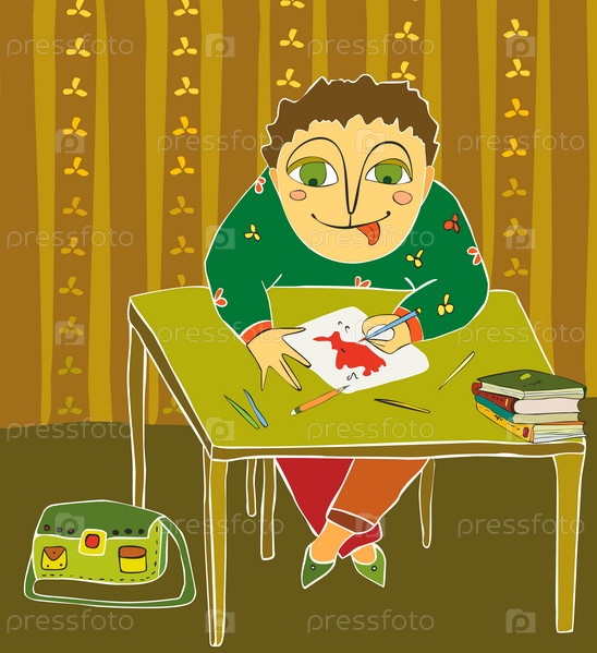 Мальчик рисует в гостиной