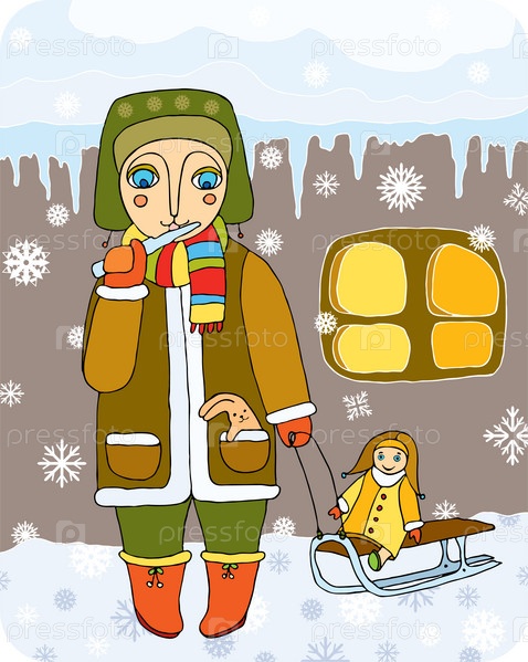 Девушка сани зима