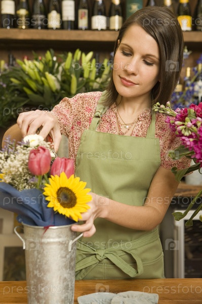 Женщина создает букет