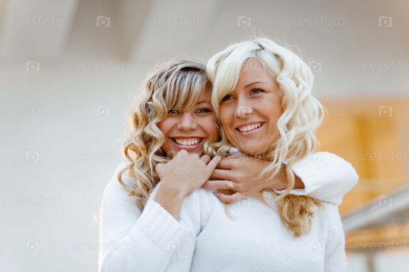 Две девушки, веселящиеся на улице