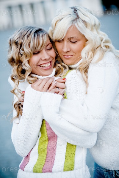 Две девушки, веселящиеся на улице