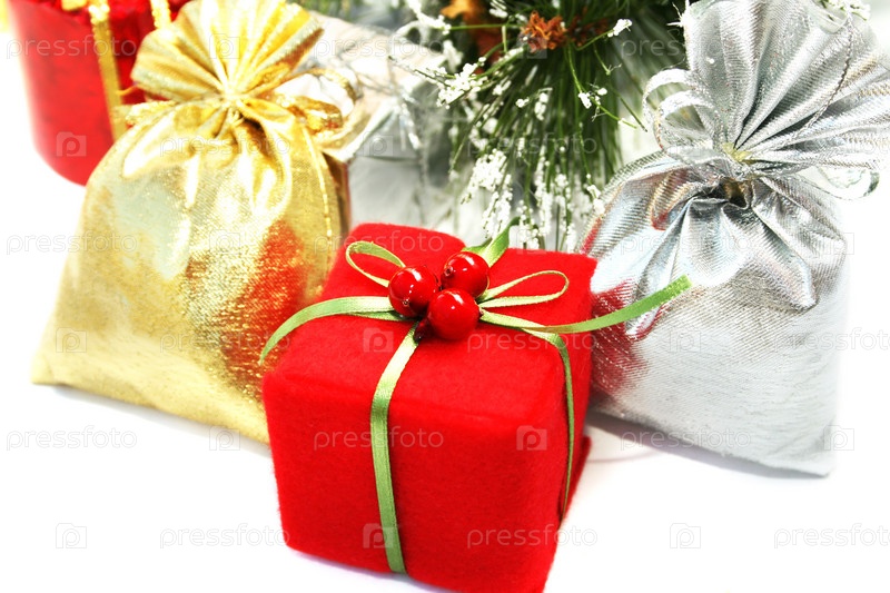 Новогодние подарки на белом фоне