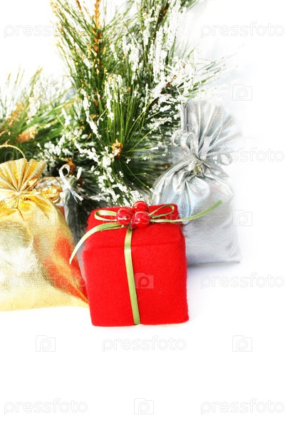 Новогодние подарки на белом фоне