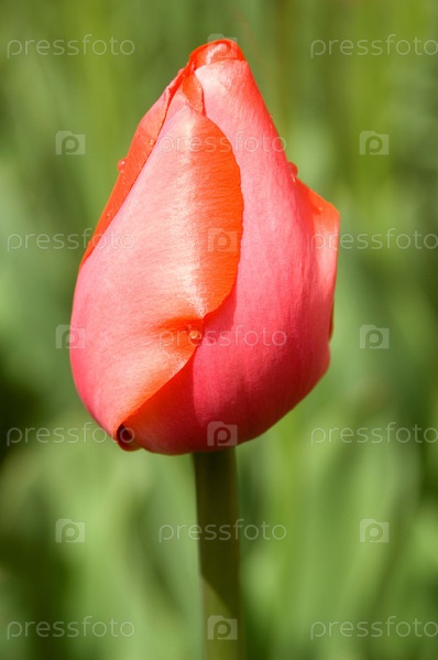 Розовый тюльпан с зеленым фоном