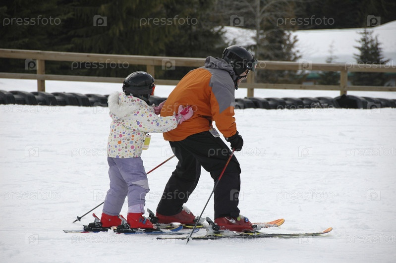 Отец и дочь на лыжах