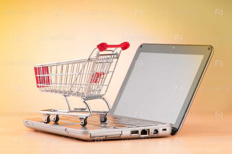 Корзина для покупок и ноутбук