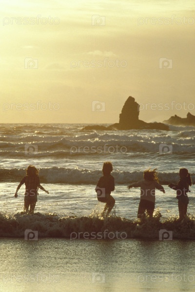 Дети играют в волнах