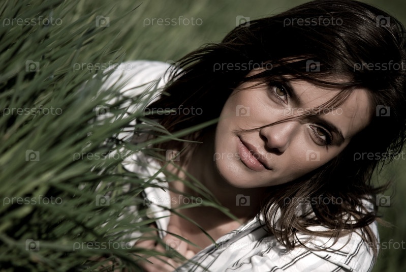 Портрет молодой женщины в траве