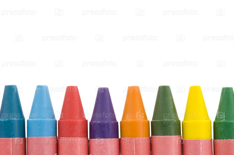 Разноцветные восковые мелки на белом фоне
