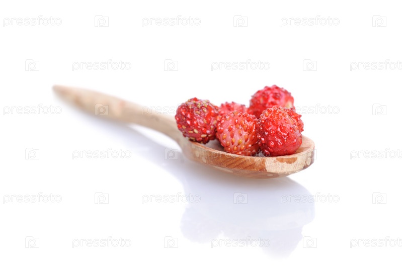 Клубника на деревянной ложке на белом фоне