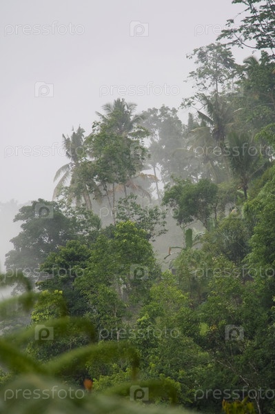Тропическая растительность в тумане в Бали