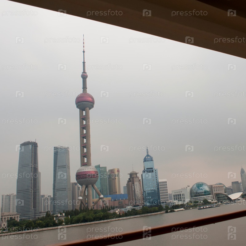 Восточная жемчужина и город, реку Хуанпу, Пудун, Шанхай, Китай