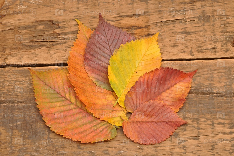 Осенние листья лежат на досках