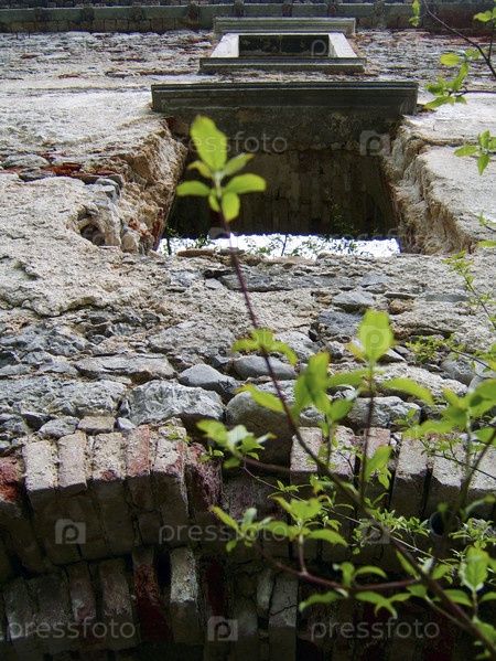 Стена старого замка, с ветки дерева