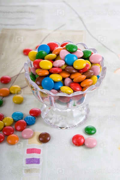 Разноцветные конфеты на столе