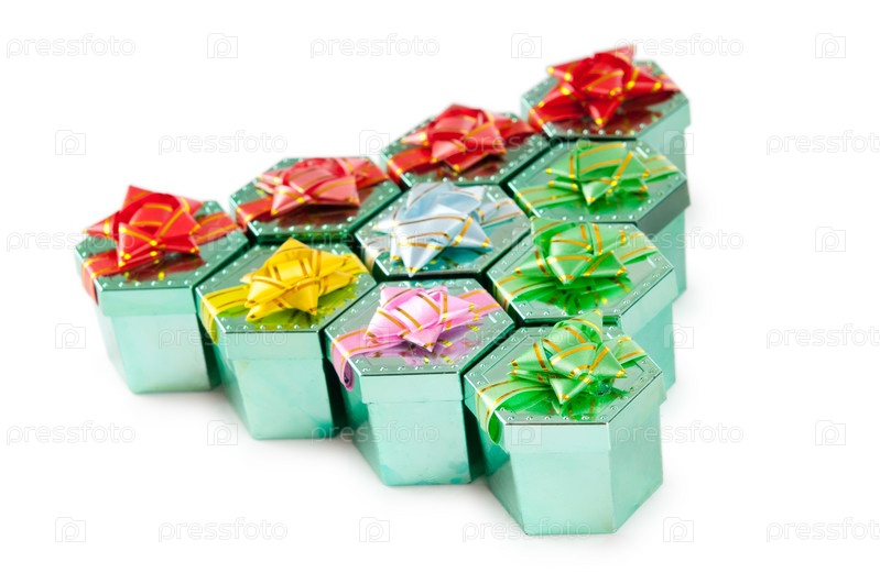 Много подарков в коробочках с бантами