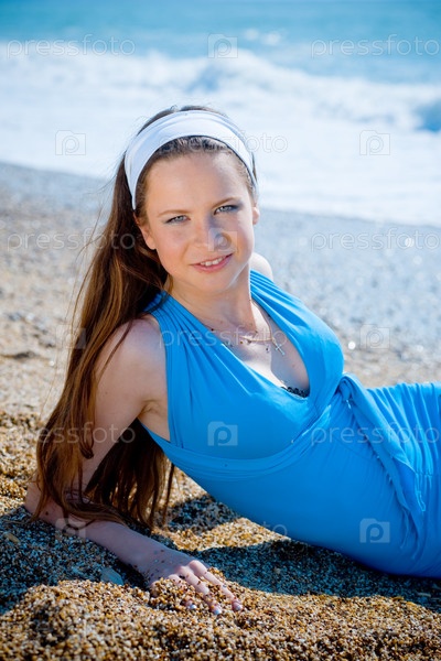 Молодая красивая девушка лежит на пляже